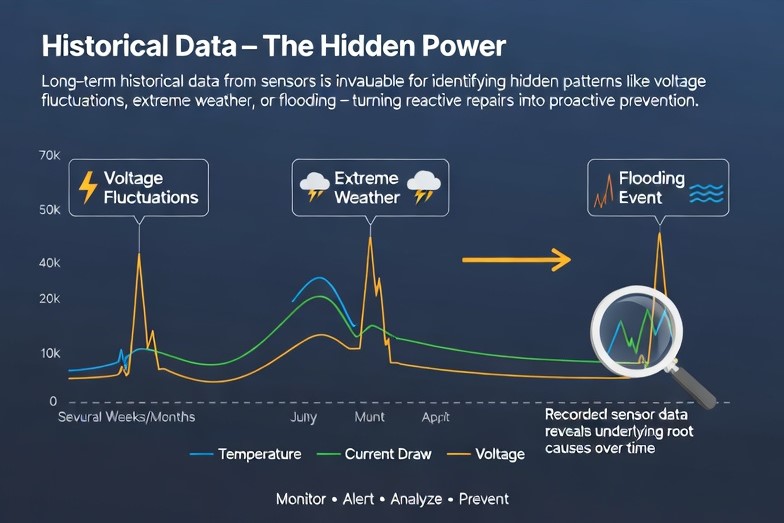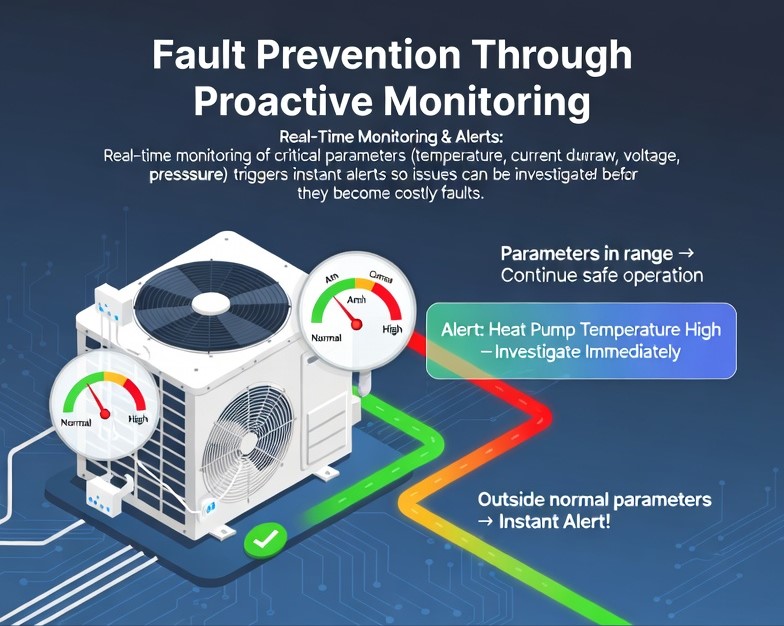 By monitoring all the critical measurements of any system, an intelligent system can alert when something is off but still within safe limits, or completely shut down a system to avoid complete failure. Not only that, because all measurements are recorded and stored over time, technicians can easily discover the source of the problem, minimizing future breakdowns.